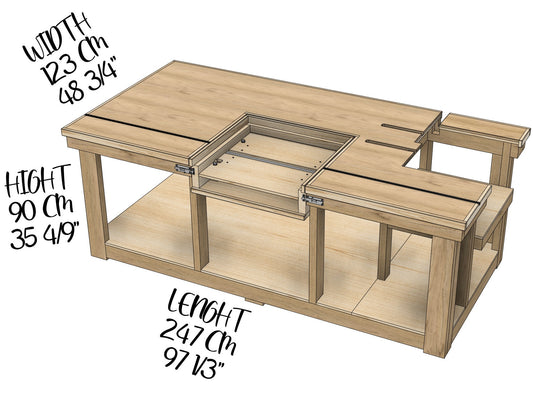 Miter Saw Flip-Top Workbench with a Table Saw | Plans in Imperial and Metric