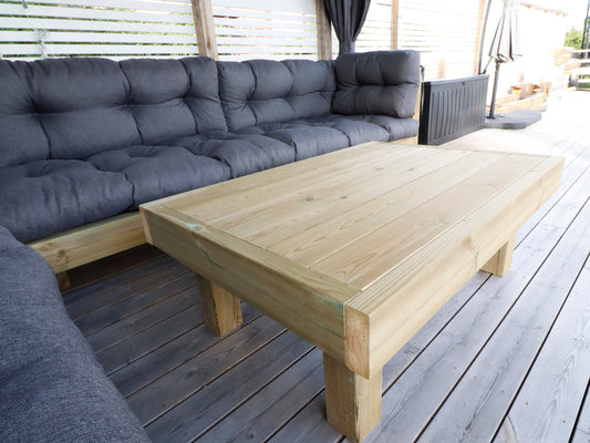Patio Furniture Set Plans with a Floating Sofa and a Solid Coffee Table. Plans in Imperial and Metric.